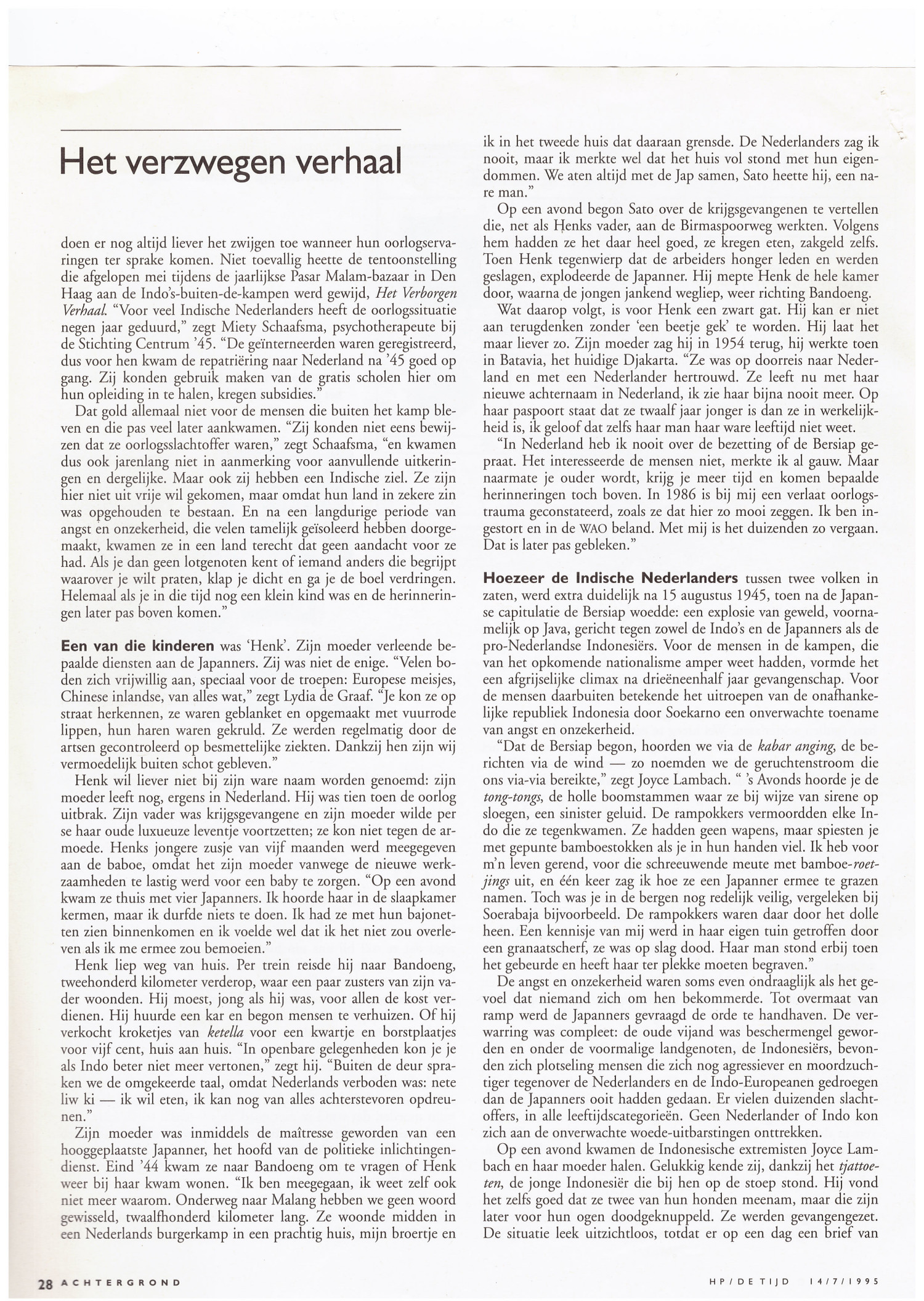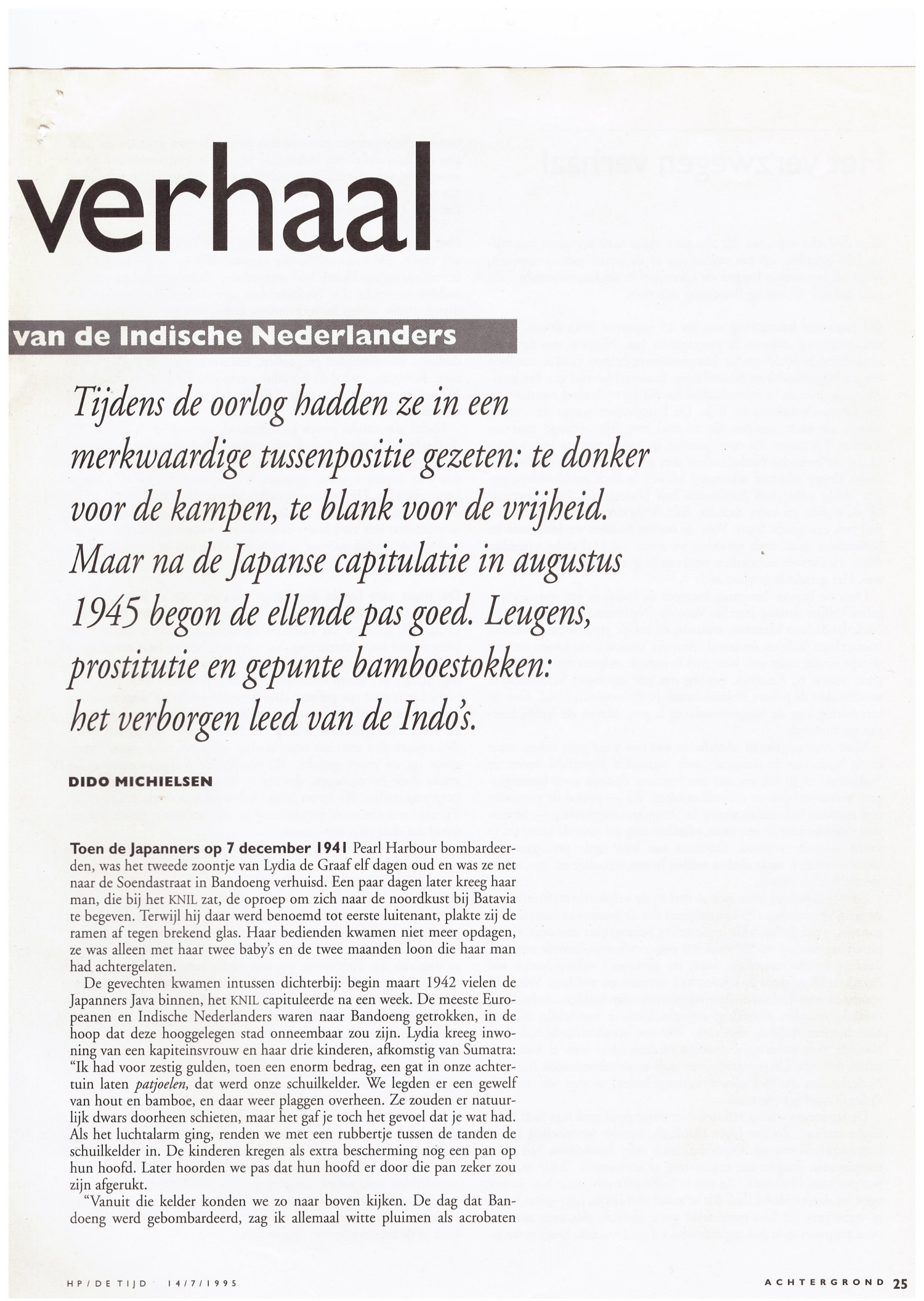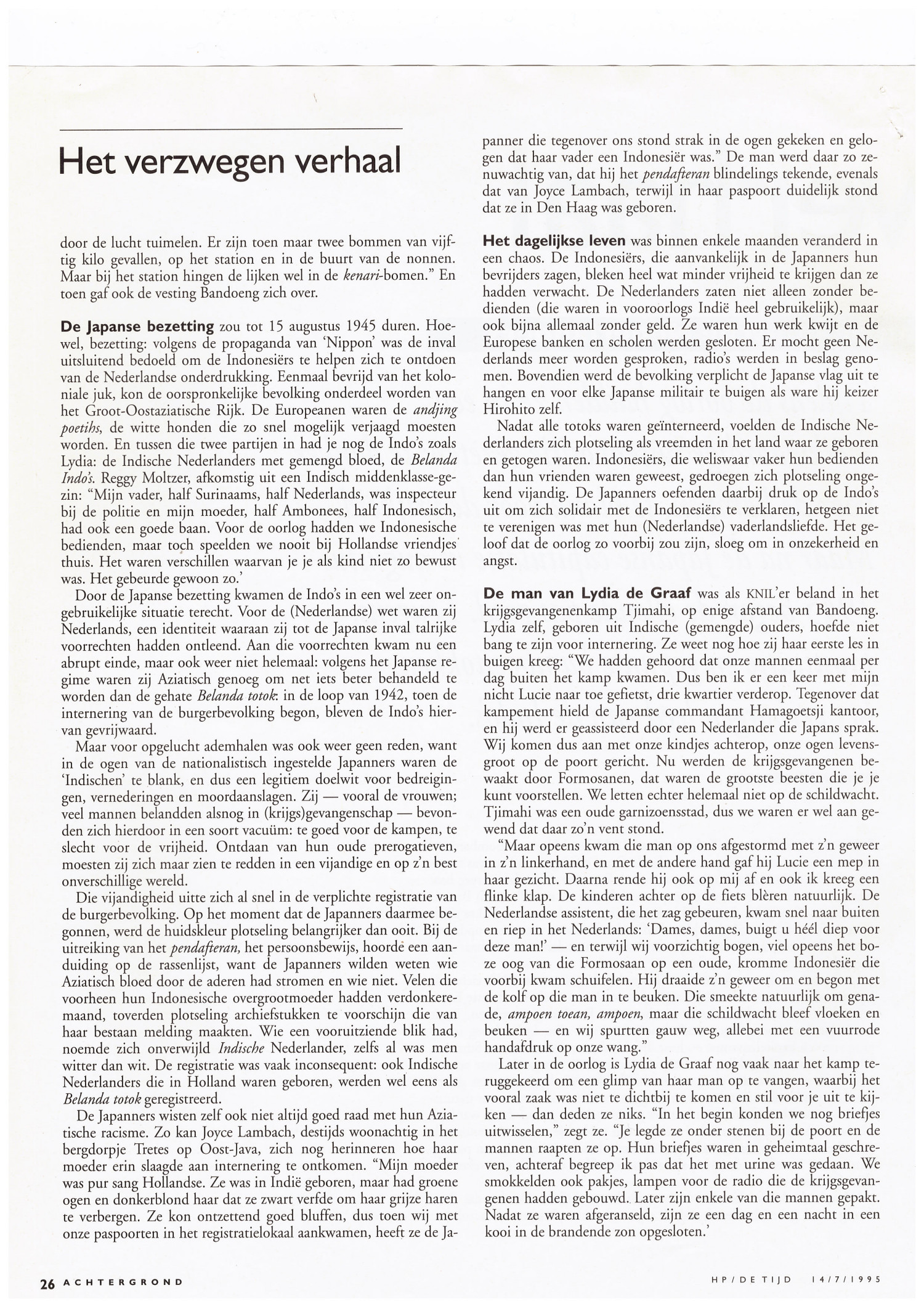 In 1995 schreef ik dit stuk in HP/DeTijd. Lydia de Graaf, mijn tante, vierde onlangs haar 97e verjaardag, omringd door haar kinderen, kleinkinderen, familie en vrienden.
