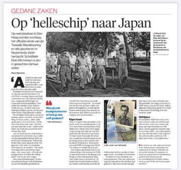 Omdat het gisteren 15 augustus was, besteedde het AD/HC ivm de herdenking van de capitulatie van Japan, aandacht aan De erfenis van mijn vader. Zondag 20 augustus interviewt Ricci Scheldwacht me bij de boekhandel van Moesson in Den Haag (uitverkocht).